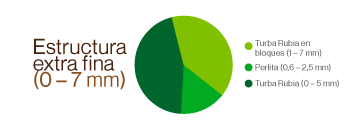 Sustrato de plantulación con estructura muy fina para producción de plantas jóvenes ornamentales y con raíces sensibles con perlita fina y turba rubia en bloques, para incrementar aireación y la capacidad de drenaje.