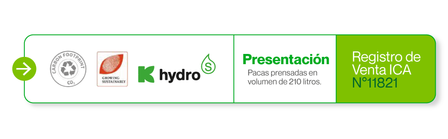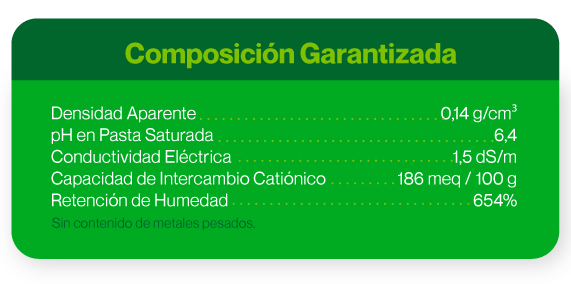 Fertilizada moderadamente descompuesta con adición de Nitrógeno, Fósforo, Potasio, Magnesio, trazas de microelementos y agente humectante Hydro-S.