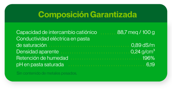 Fertilizada moderadamente descompuesta con adición de Nitrógeno, Fósforo, Potasio, Magnesio, trazas de microelementos y agente humectante Hydro-S.