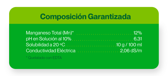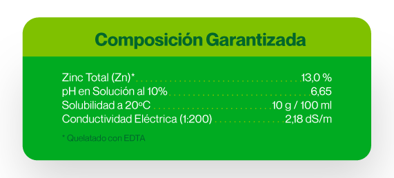 El producto está quelatado con EDTA al 100%, lo cual permite mantener alta estabilidad en el suelo y soluciones nutritivas, favoreciendo la disponibilidad de este micronutriente para las plantas.