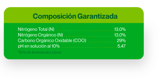Ejerce un efecto bioestimulante en los cultivos, durante su etapa de mayor desarrollo y en periodo de fructificación.